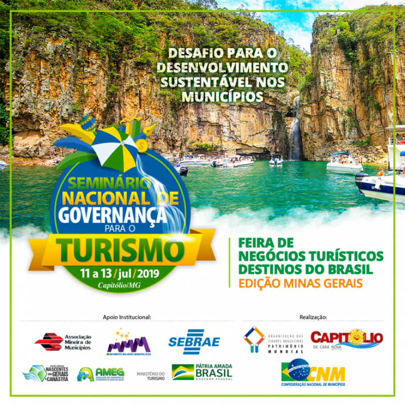 O Seminário Nacional de Governança para o Turismo será a oportunidade de compartilhar experiências e de debater alternativas para implementação e aprimoramento do turismo sustentável nos municípios brasileiros. As discussões serão voltadas aos eixos temáticos da Cultura, Patrimônio e Meio Ambiente. O presidente da CNM, Glademir Aroldi, e o ministro do Turismo, Marcelo Álvaro Antônio, são esperados no evento que será realizado de 11 a 13 de julho de 2019, no Clube Campestre Escarpas do Lago. As inscrições estão abertas gratuitamente por meio do site: www.governancaparaoturismo.cnm.org.br .