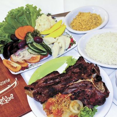 Modo de fazer: Polvilhe os t-bones com sal grosso. Leve para assar na grelha bem quente, em braseiro forte. A carne deve ficar assada por fora e vermelha por dentro.