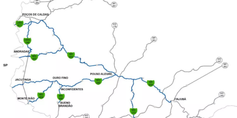 Conforme previsto no contrato, serão oito praças de pedágios implantadas no Sul de Minas. O lote leiloado inclui as rodovias BR-459, LMG-877, CMG-146, MG-455, MG-295, MG-290 e MG-173.
