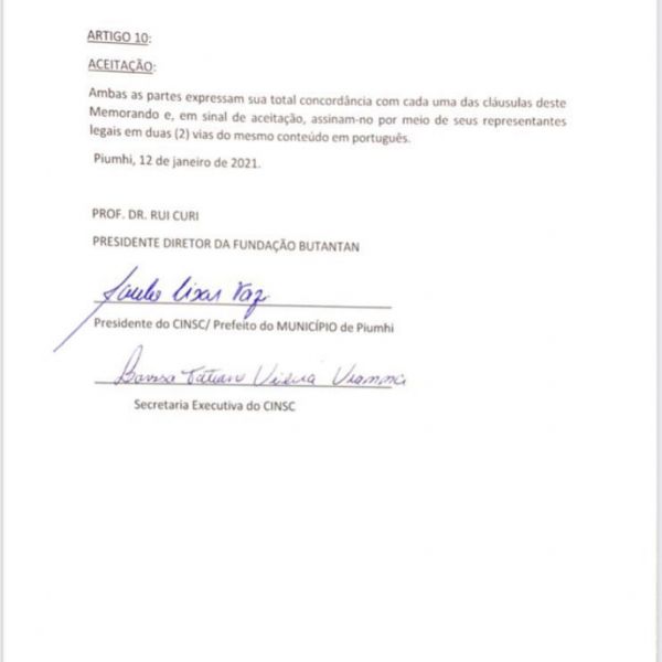 CINSC faz intenção de negociação com o Instituto Butantan para aquisição da vacina do COVID -19