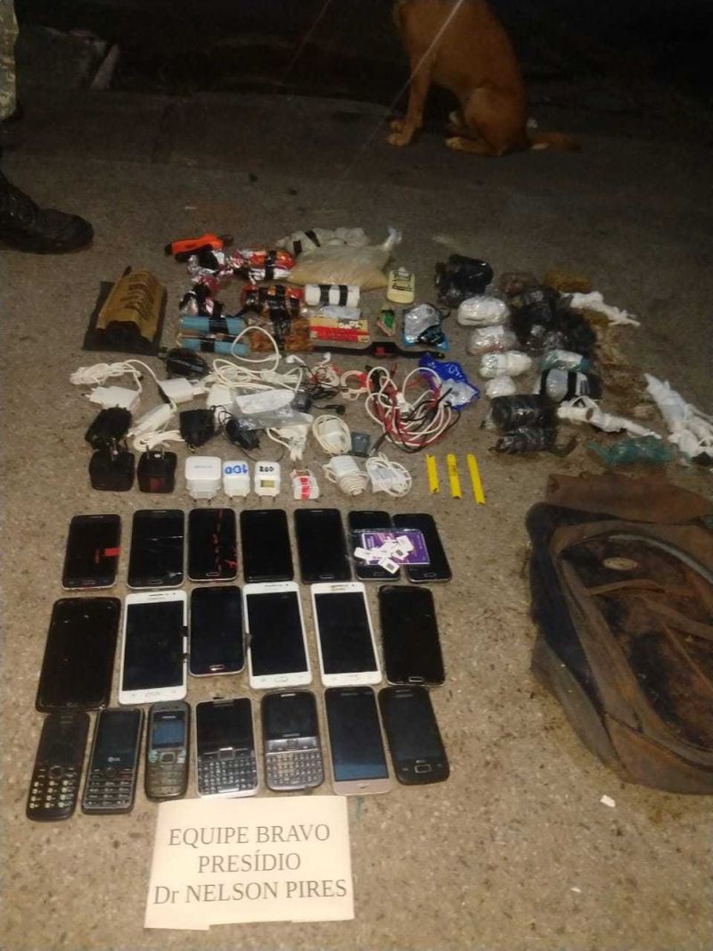 Mochila com drogas, celulares, carregadores e outros objetos proibidos é encontrada em horta do presídio de Oliveira